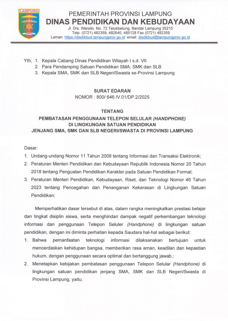Pembatasan Penggunaan Handphone di Lingkungan Satuan Pendidikan
