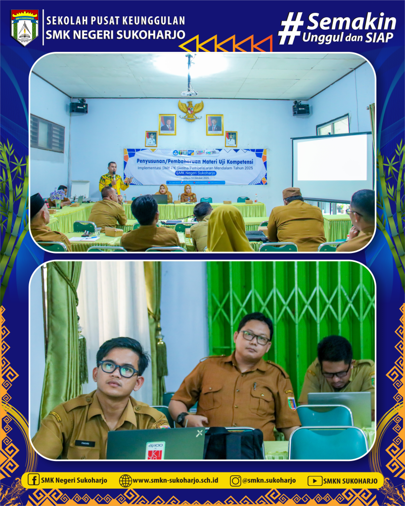Pada Selasa, 14 Oktober 2025, SMKN Sukoharjo menyelenggarakan kegiatan “Penyusunan/Pembaharuan Materi Uji Kompetensi” sebagai langkah strategis dalam meningkatkan mutu pelaksanaan uji kompetensi di lingkungan sekolah